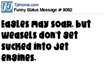 - # 98366 Eagles may soar, but weasels don't get sucked into jet engines.