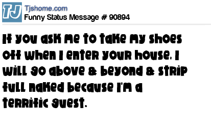 X If you ask me to take my shoes off when I enter your house, I will go above & beyond & strip full naked because I'm a terrific guest.