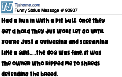 X is had a run in with a pit bull, once they get a hold they jus wont let go until you're just a quivering and screaming like a girl.....the dog was fine, it was the owner who ripped me to shreds defending the breed.