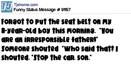 X forgot to put the seat belt on my 8-year-old boy this morning. "You are an irresponsible father!" Someone shouted "Who said that? I shouted. "Stop the car, son."