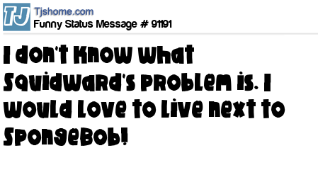 X I don't know what Squidward's problem is. I would love to live next to SpongeBob!