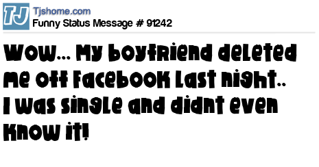 X is Wow... My boyfriend deleted me off Facebook last night.. I was single and didnt even know it!