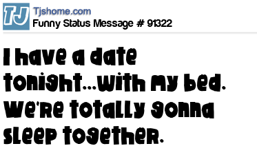 X  I have a date tonight...with my bed. We're totally gonna sleep together.