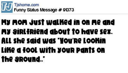 X My mom just walked in on me and my girlfriend about to have sex. All she said was "You're lookin like a fool with your pants on the ground.."