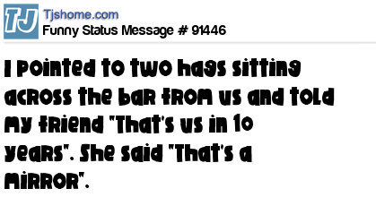 - # 80543 I pointed to two old farts sitting across the bar and told my friend "That's us in 10 years". He said "Dude, that's a mirror"