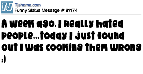 X says A week ago, I really hated people...today I just found out I was cooking them wrong ;)
