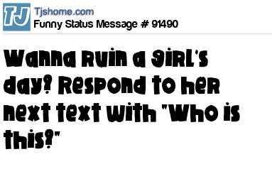 X says Wanna ruin a girl's day? Respond to her next text with "Who is this?"
