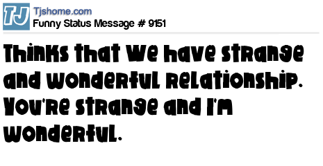 X thinks that We have strange and wonderful relationship. You're strange and I'm wonderful.