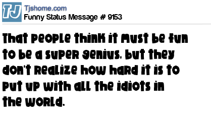- # 24311 People think it must be fun to be a super genius, but they don't realize how hard it is to put up with all the idiots in the world"