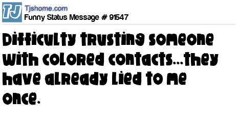 X has difficulty trusting someone with colored contacts...they have already lied to me once.