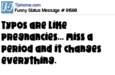 X  Typos are like pregnancies... miss a period and it changes everything.