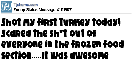 - # 164425 I just shot my first turkey today....it sure scared the hell out of everyone in the frozen food section.