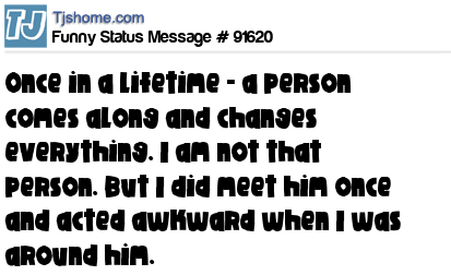 X Once in a lifetime - a person comes along and changes everything. I am not that person. But I did meet him once and acted awkward when I was around him.