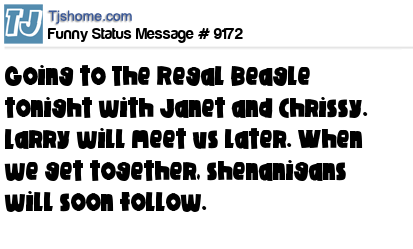 X is going to The Regal Beagle tonight with Janet and Chrissy. Larry will meet us later. When we get together, shenanigans will soon follow.