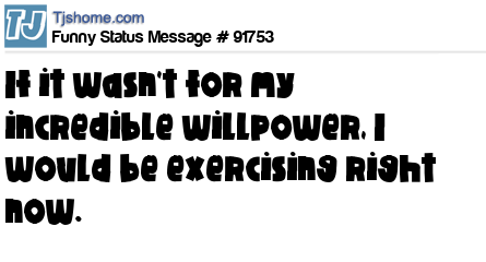 X If it wasn't for my incredible willpower, I would be exercising right now.