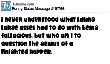 X I never understood what liking large asses had to do with being fallacious, but who am I to question the genius of a knighted rapper.
