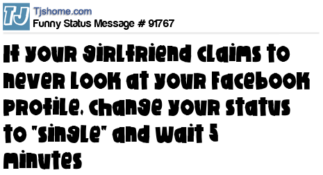 - # 63521 If your girlfriend claims to never look at your Facebook profile, change your relationship status to 'single' and wait 5 minutes.