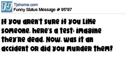X If you aren't sure if you like someone, here's a test: imagine they're dead. Now, was it an accident or did you murder them?