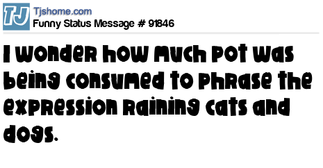 X says I wonder how much pot was being consumed to phrase the expression raining cats and dogs.