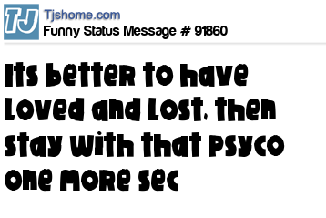 - # 126331 "whoever said tis better to loved and lost than never loved can scuk my ballsack..."Yeh, you're right because I'm geting a restraining order for them... :)