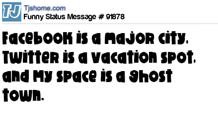 - # 70848 Facebook = Heavily populated city. Twitter = Just a vacation spot. Myspace = A ghost town.