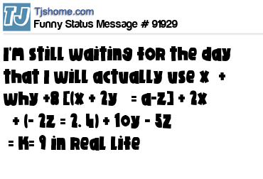 X says I'm still waiting for the day that I will actually use x² + why +8 [(x + 2y ² = a-z] + 2x ³ + (- 2z = 2. 4) + 10y - 5Z ³= k= 9 in real life