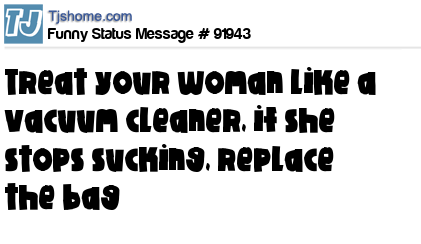 - # 94982 treat your woman like a vacuum cleaner, if she stops sucking, replace the bag!