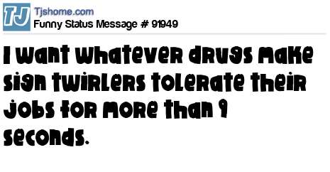 X I want whatever drugs make sign twirlers tolerate their jobs for more than 9 seconds.