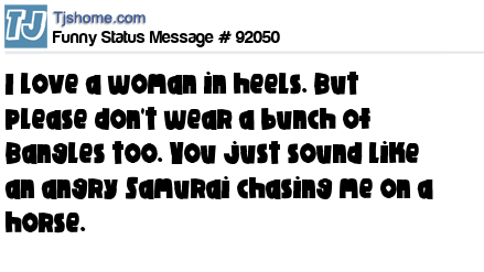 X says I love a woman in heels. But please don't wear a bunch of Bangles too. You just sound like an angry Samurai chasing me on a horse.