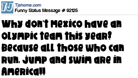 - # 16094 Why doesn't Mexico have an Olympic team? Because those that can run,jump and swim are already in the U.S.