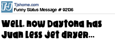 - # 92149 How many NASCAR drivers does it take to destroy a jet dryer?? Juan