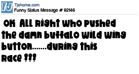 X is Ok All right who pushed the damn buffalo wild wing button.......during this race ???