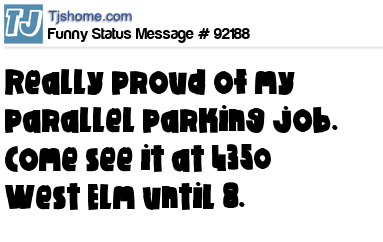 X Really proud of my parallel parking job. Come see it at 4350 West Elm until 8.