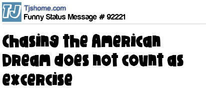- # 78239 Chasing the American Dream does not count as exercise.