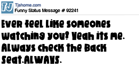 X Ever feel like someones watching you? Yeah its me. Always check the Back Seat.ALWAYS.