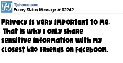 - # 122011 I've never met a group of people more worried about their "privacy" than the people on Facebook that share EVERYTHING about themselves.