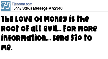 X The love of Money is the root of all evil.. For more information,,,, send $20 to me.