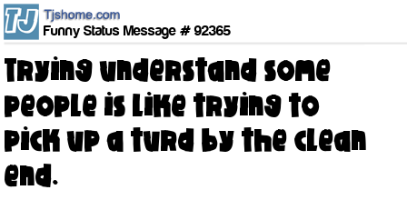 - # 107037 Trying to understand some people is like trying to pick up a turd by the clean end!!!
