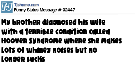 X My brother diagnosed his wife with a terrible condition called Hoover Syndrome where she makes lots of whiney noises but no longer sucks