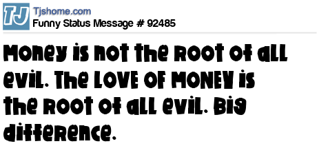 - # 92346 The love of Money is the root of all evil.. For more information,,,, send $20 to me.