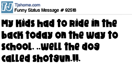 - # 150617 No, seriously. My dog called 'Shotgun' - get in the back seat.