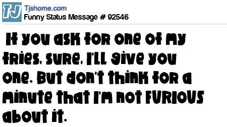 X If you ask for one of my fries, sure, I'll give you one. But don't think for a minute that I'm not FURIOUS about it.