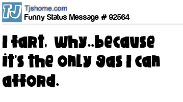 - # 89749 I fart, because it's the only gas I can afford.