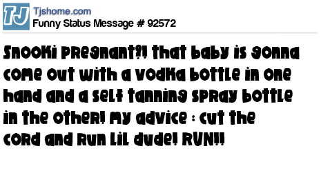 X is Snooki pregnant?! that baby is gonna come out with a vodka bottle in one hand and a self tanning spray bottle in the other! my advice : cut the cord and run lil dude! RUN!!