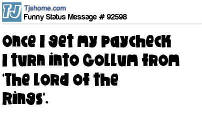 X is Once I get my paycheck I turn into Gollum from 'The Lord of the Rings'.