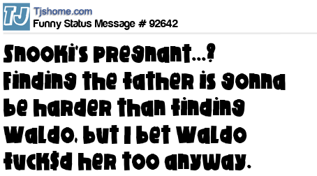 X is Snooki's pregnant...? Finding the father is gonna be harder than finding Waldo, but I bet Waldo fuck$d her too anyway.