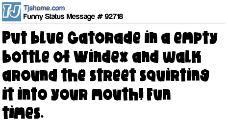 - # 79201 To do list: put blue gatorade in a windex spray bottle. spray it into my mouth in public so people think i'm drinking windex.