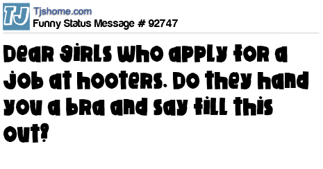 - # 88860 I always wondered what the job application is like at Hooters.. do they just give you a bra and say, "here fill this out"..?