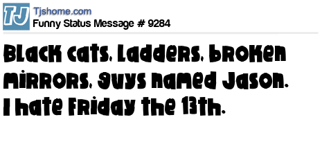 - # 56751 I smash mirrors, walk under ladders, spill salt & cross paths with black cats. Be afraid... be very, very afraid, its Friday the 13th!!!