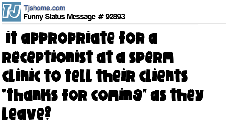 - # 164156 I wonder if the receptionist at the sperm bank has ever used this phrase, "Thanks for coming"....